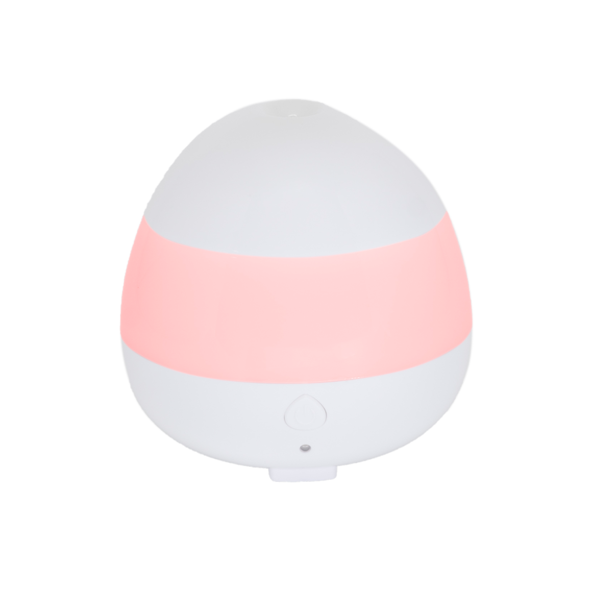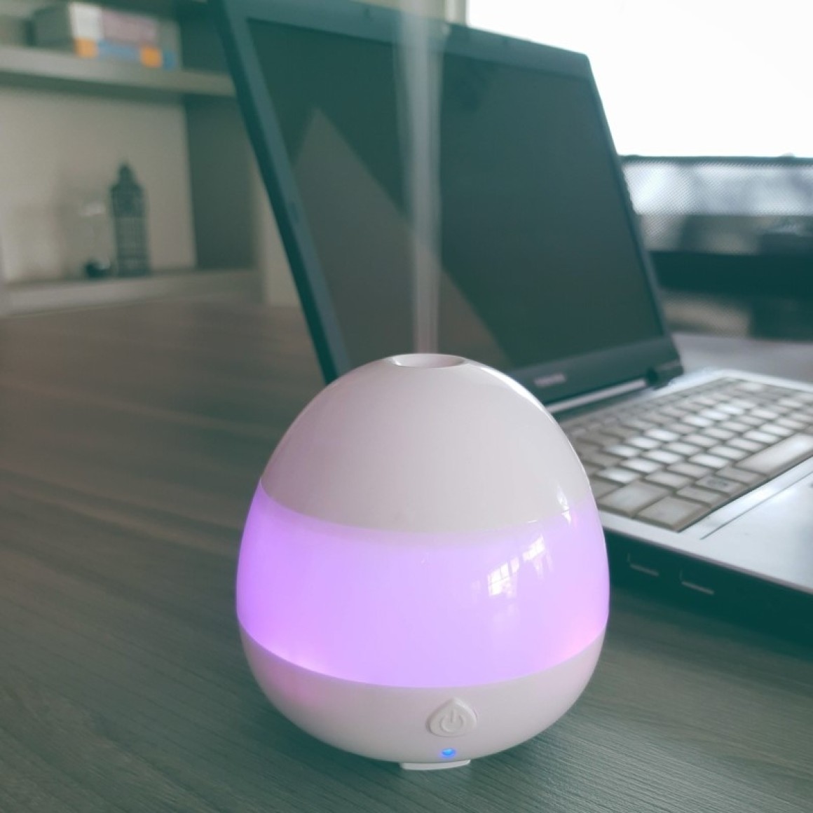 A lâmpada do difusor ilumina suavemente o vapor e o ambiente.