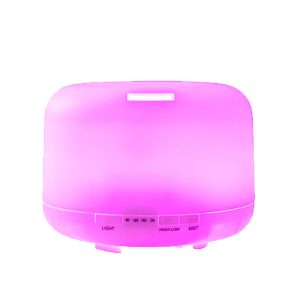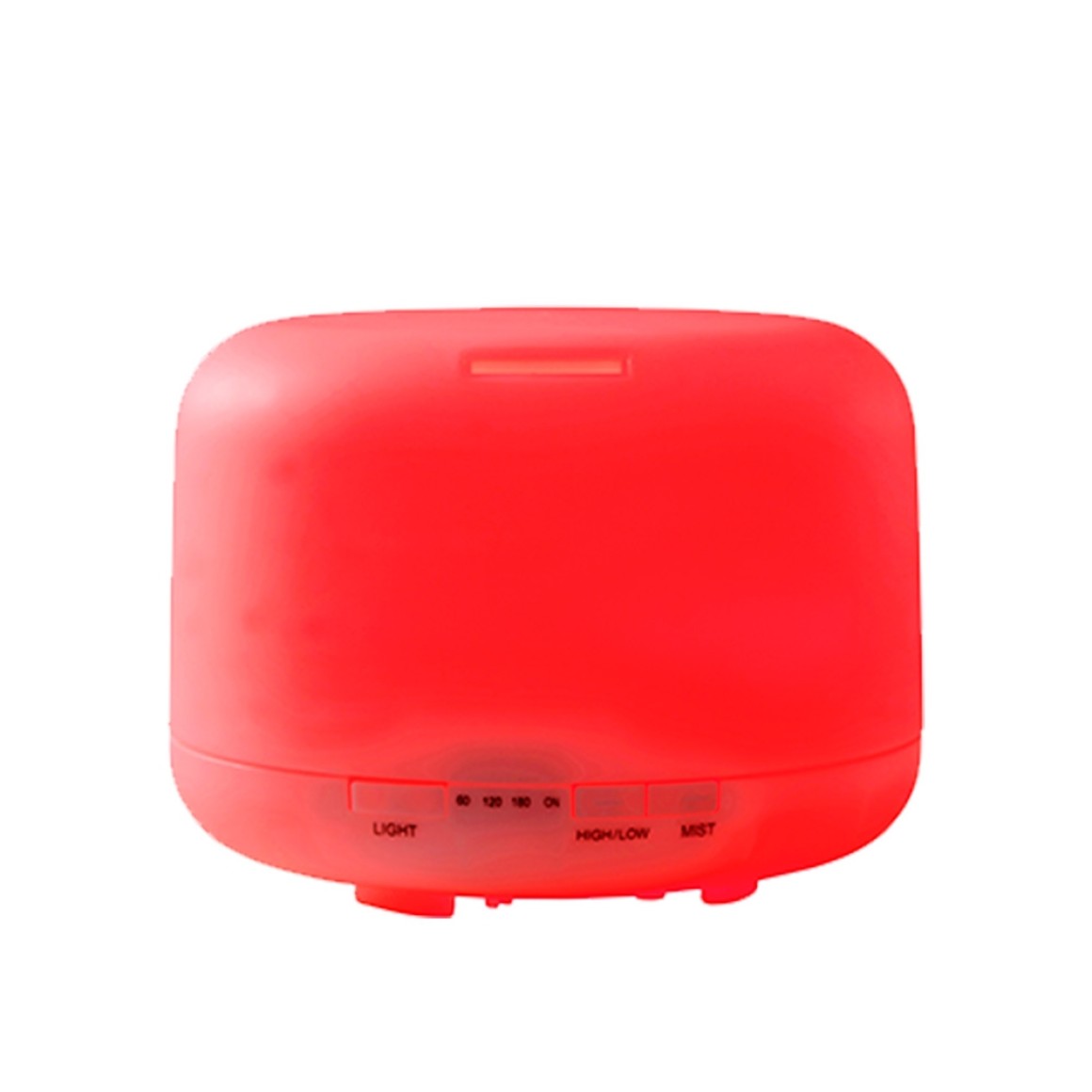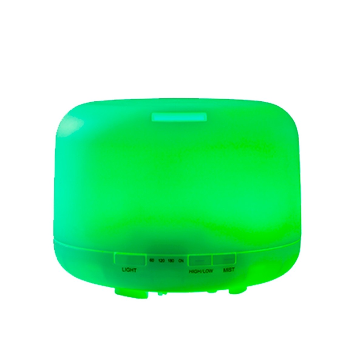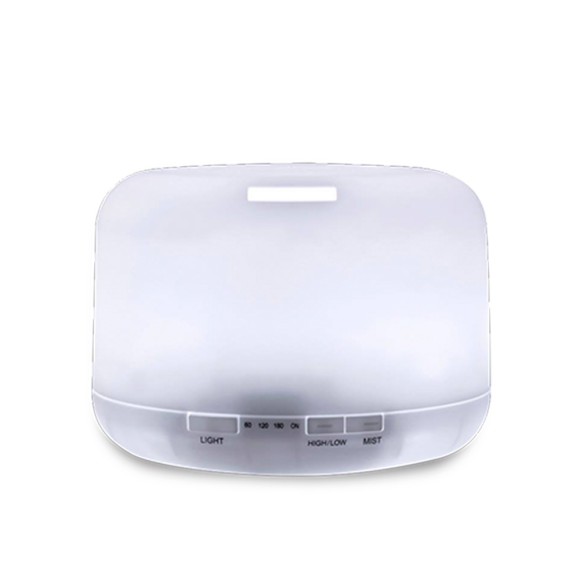 A lâmpada do difusor ilumina suavemente o vapor e o ambiente.