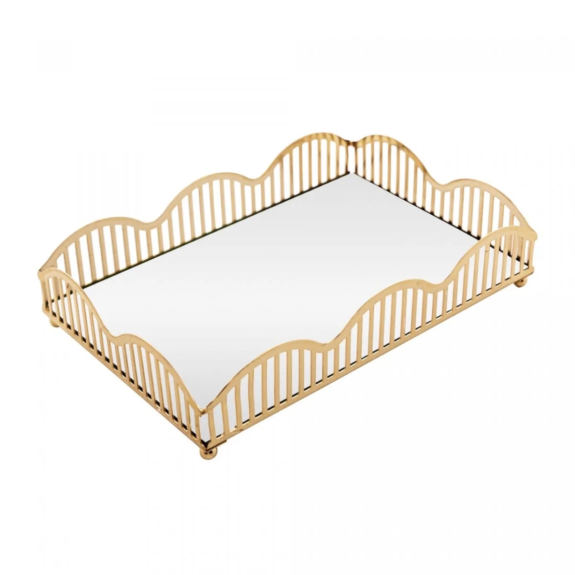 Adicione um toque de elegância e sofisticação à sua decoração com a Bandeja com Espelho Wave Dourada.