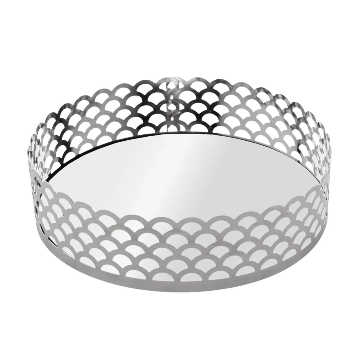Adicione um toque de sofisticação e elegância à sua decoração com a deslumbrante Bandeja de Metal com Espelho Arles Prateada da Lyor.