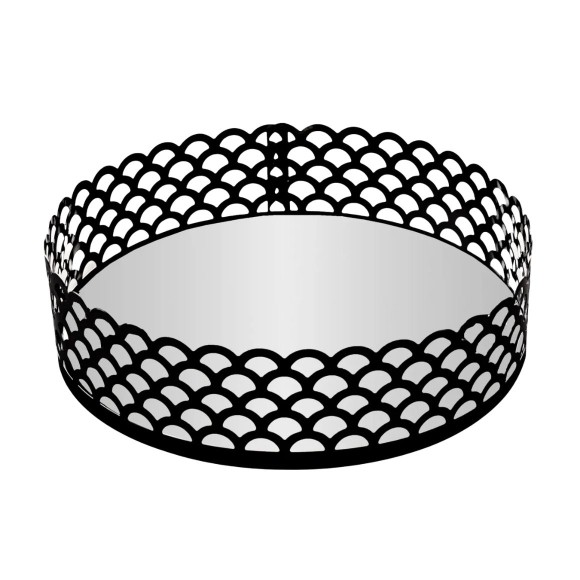 Adicione um toque de sofisticação e elegância à sua decoração com a deslumbrante Bandeja de Metal com Espelho Arles Preto Fosco da Lyor.