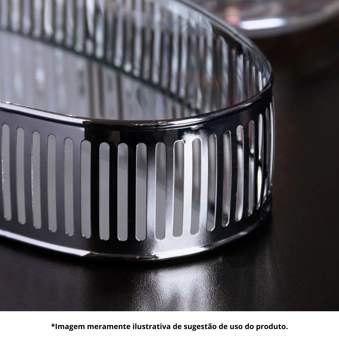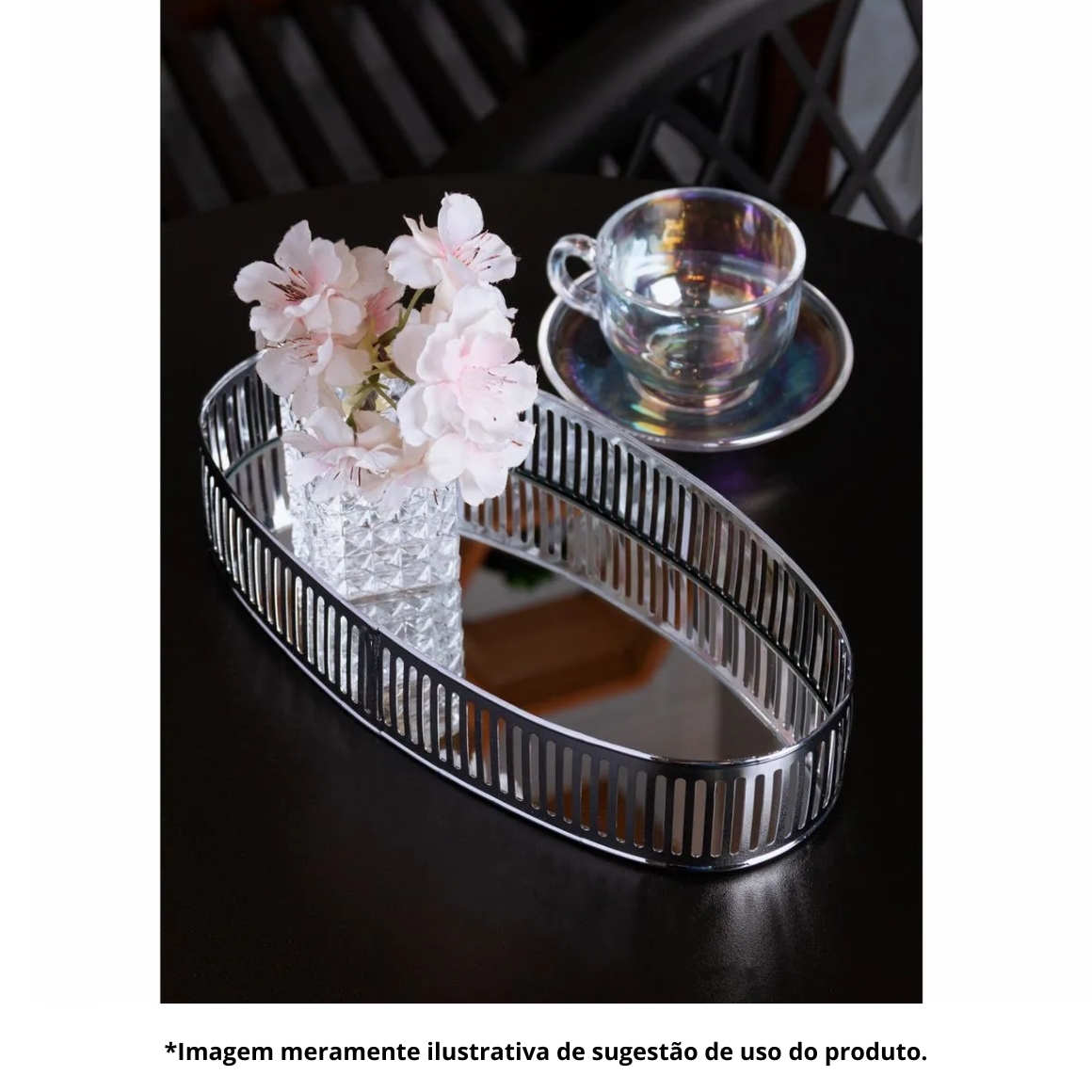 Adicione um toque de luxo e sofisticação à sua decoração com a deslumbrante Bandeja de Metal com Espelho Berlin Prateada.
