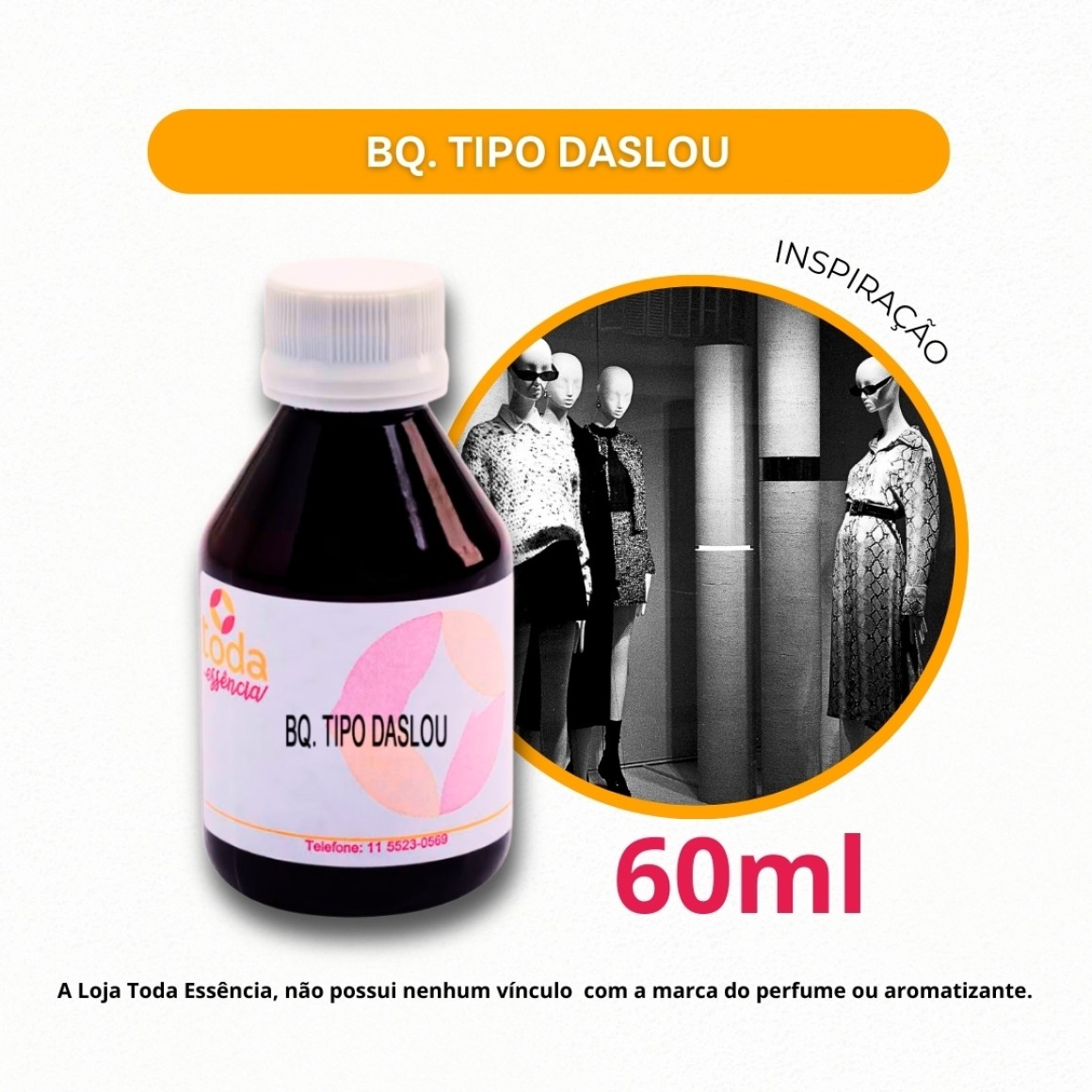 Bq. Tipo Daslou - 60 ml - Inspiração "Daslu" apresenta descrição olfativa: Oriental, Cítrico, Musk.