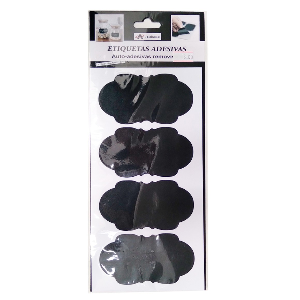 Pacote Etiqueta Auto-Adesiva Modelo Balão com 4 unidades auto-adesivas removiveis.