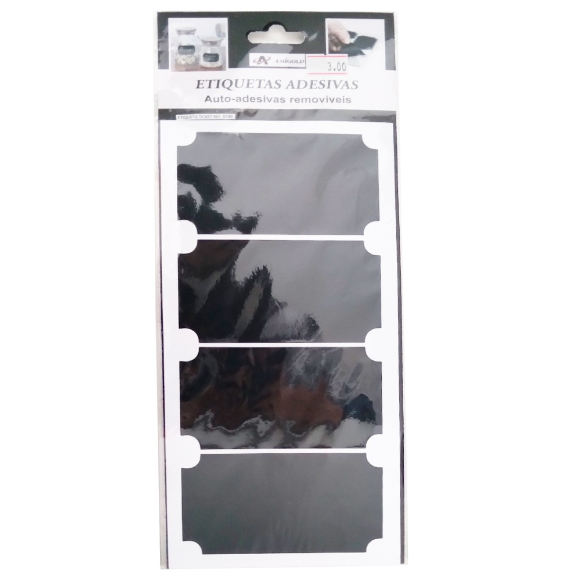 Pacote Etiqueta Auto-Adesiva Modelo Ticket com 4 unidades auto-adesivas removiveis.