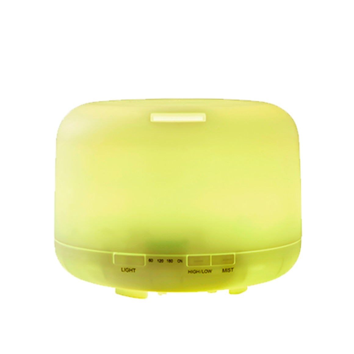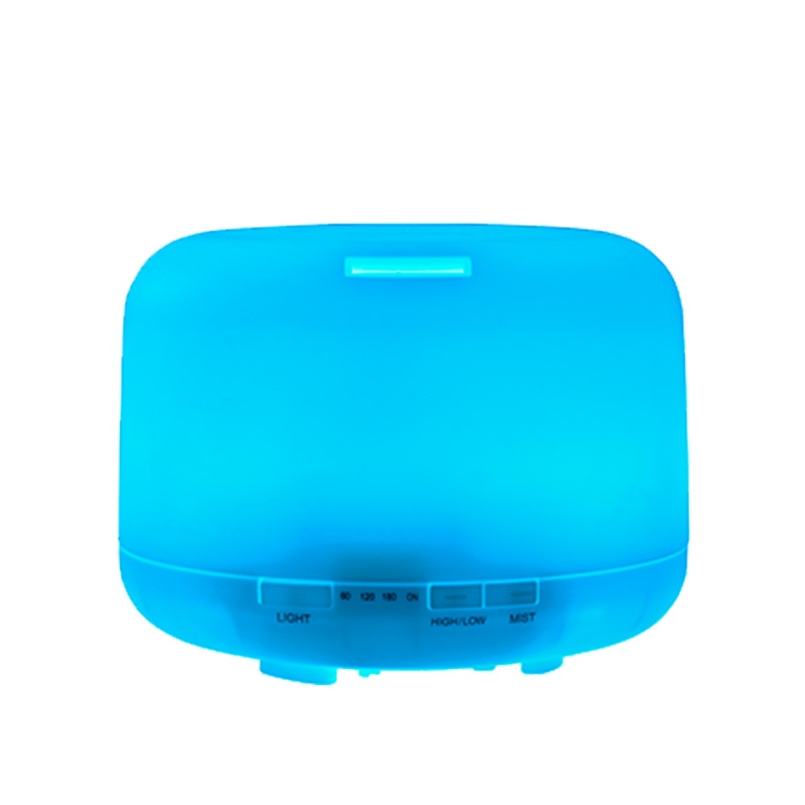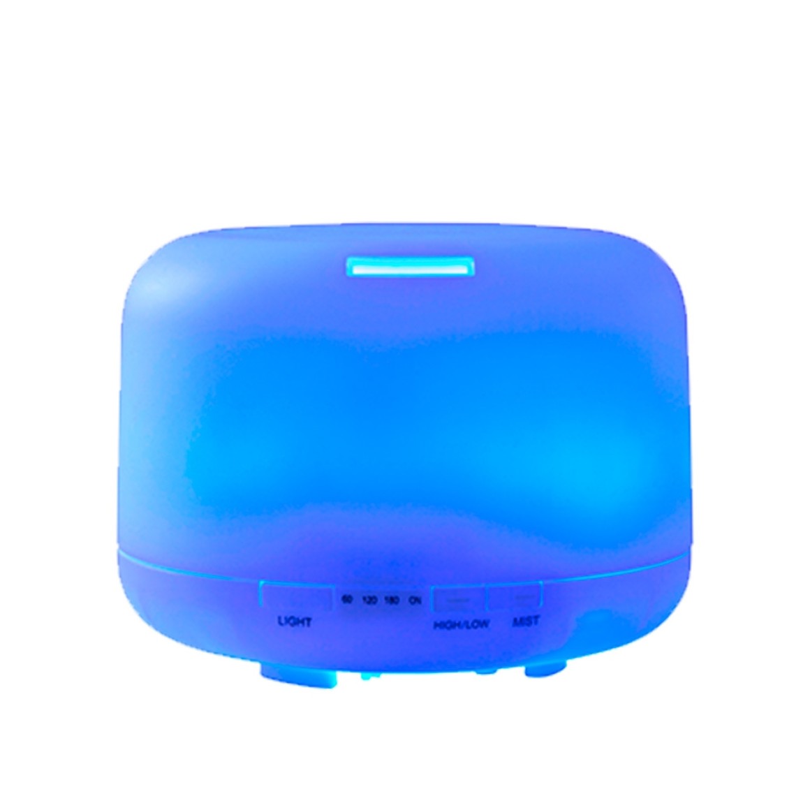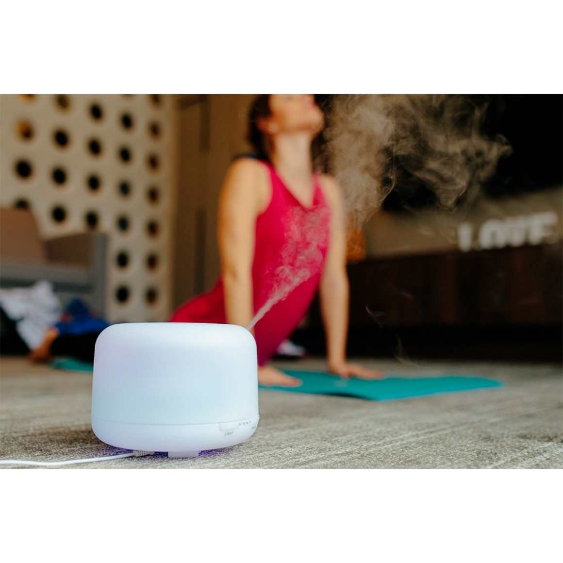 A lâmpada do difusor ilumina suavemente o vapor e o ambiente.