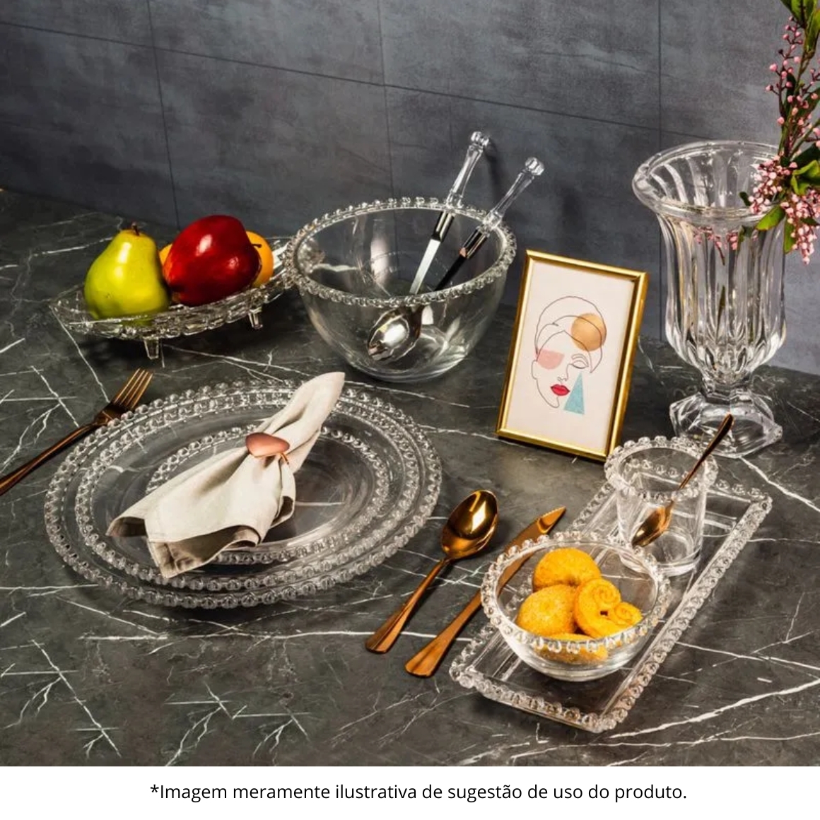 Linda bandeja de cristal incolor, toda em vidro com design delicado e romântico.