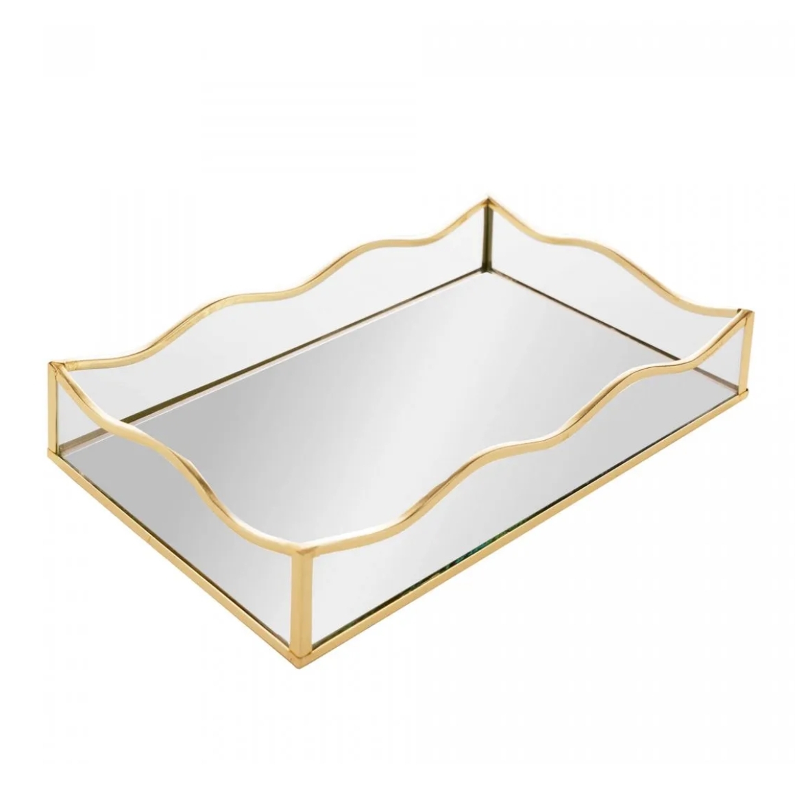 Adicione um toque de elegância e sofisticação à sua decoração com a Bandeja com Espelho Ocean Dourado.