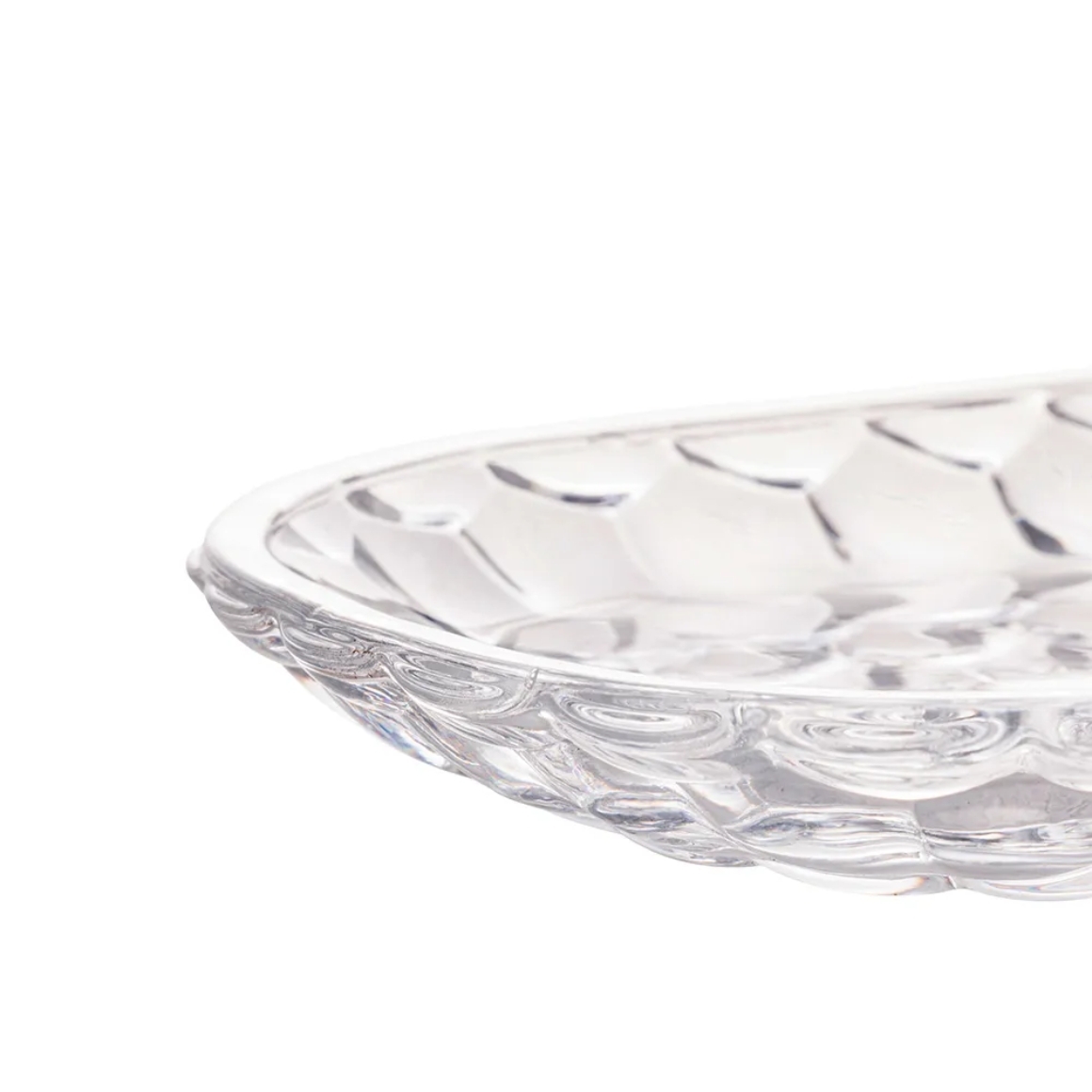 Linda bandeja de cristal incolor, toda em vidro cristal com detalhes em bolhas.