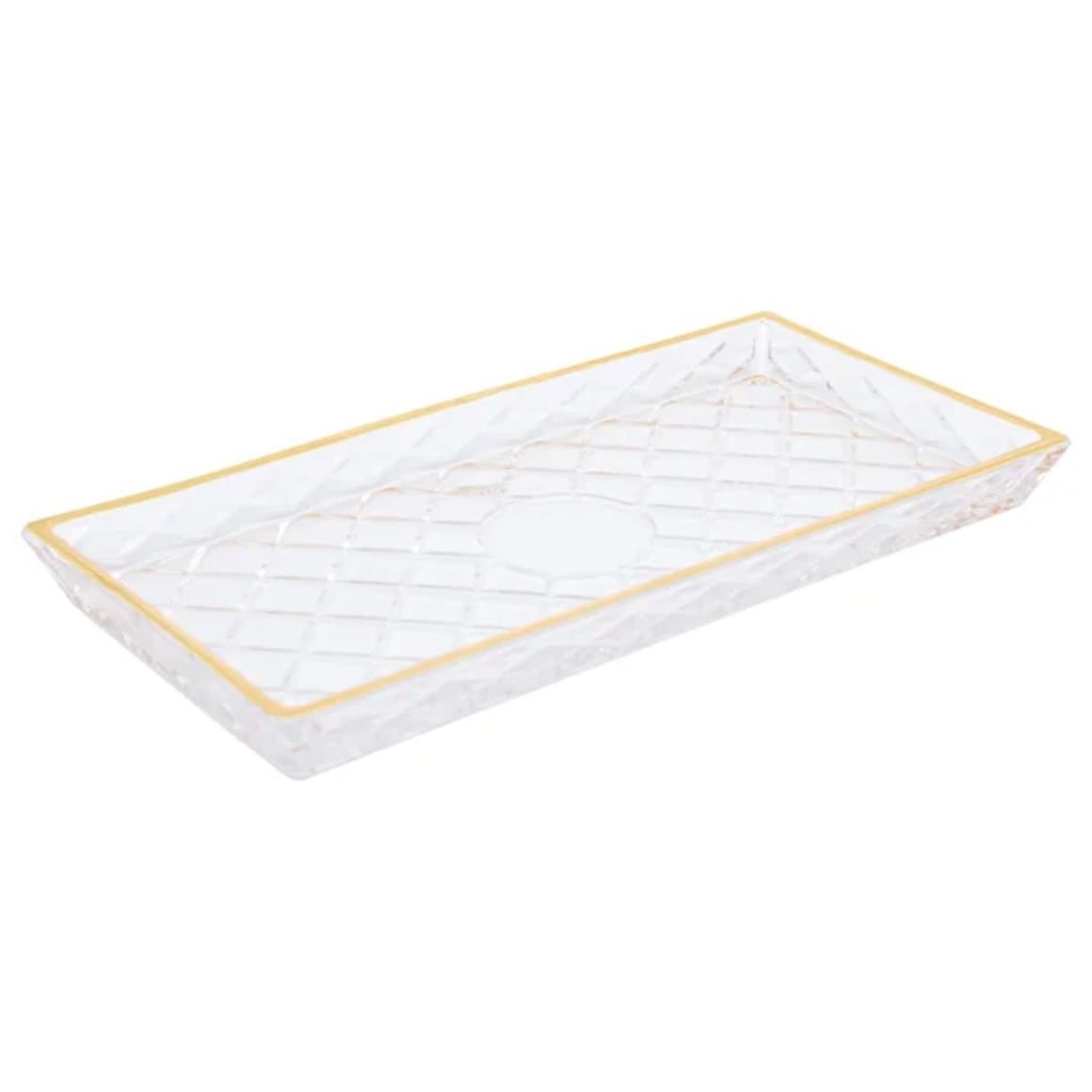 BANDEJA DE CRISTAL C/FIO DE OURO DELI DIAMOND 28,5X14,5X2CM - REF. 5399
