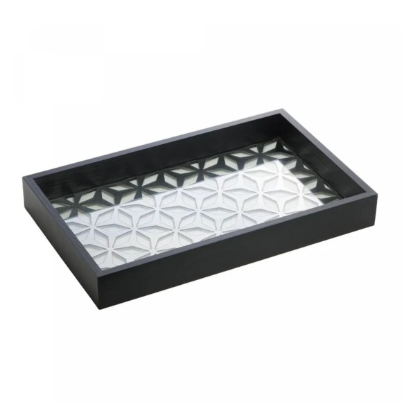 BANDEJA DE MADEIRA C/ VIDRO PINUS PRETA GARDEN 38CM X 24CM X 4,5CM - REF.13850