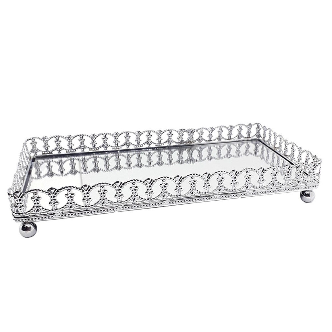 Bandeja Retangular Metal Det. Prata 20x3cm Ref.29219