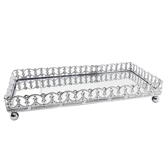 BANDEJA RETANGULAR DE METAL DETALHES REF:29219 PRATA