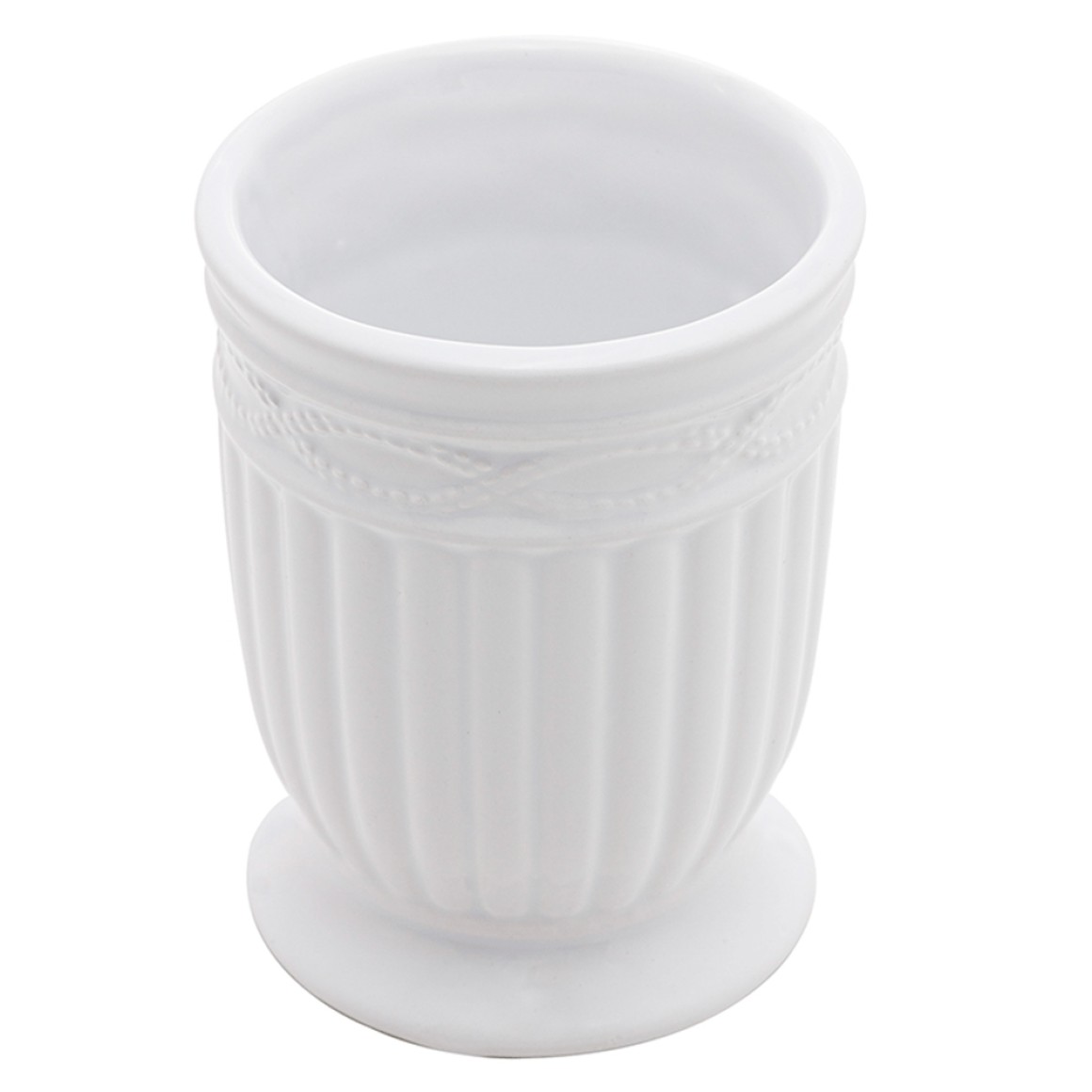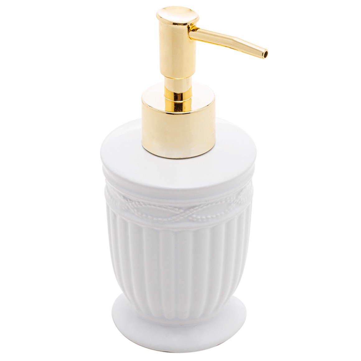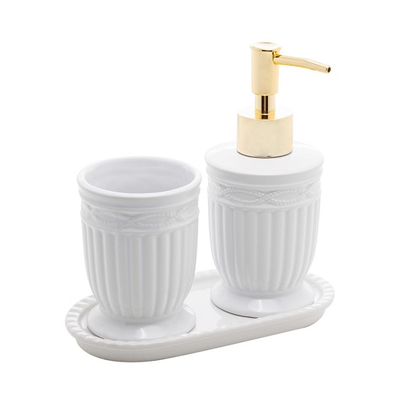 Conjunto 3 Peças Para Banheiro de Cerâmica Greece - Branco e Dourado.