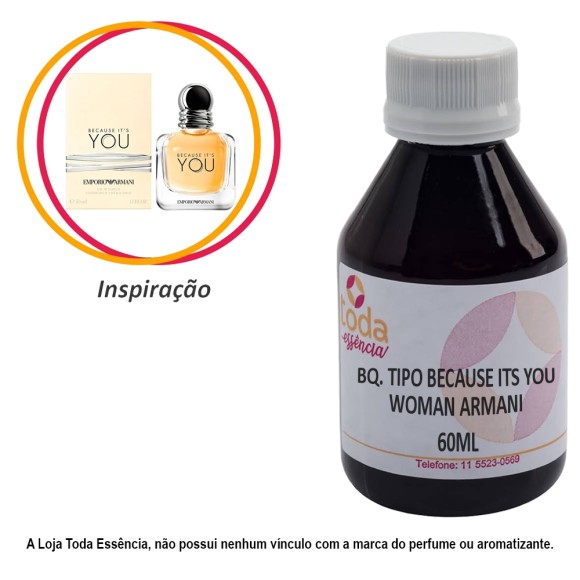 Bq. Tipo Because Its You Woman Armani - 60 ml - Inspiração "Because Its You Woman Armani" apresenta descrição olfativa: Floral, Frutado, Amadeirado, Balsamico, Musk.