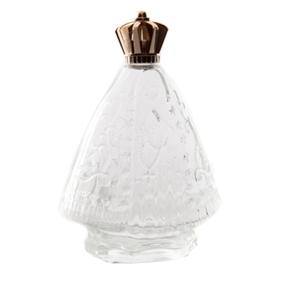 Lindo frasco de vidro incolor Nossa Senhora Aparecida, tampa coroa dourada.
