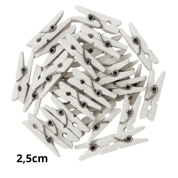 MINI PREGADOR DE MADEIRA BRANCO C/ 50 UNIDADES 2,5CM