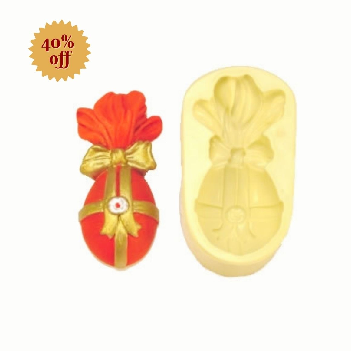 Molde de silicone Ovo com Laço Pequeno (1 cav.), cód. 3672 para fins artesanais.
