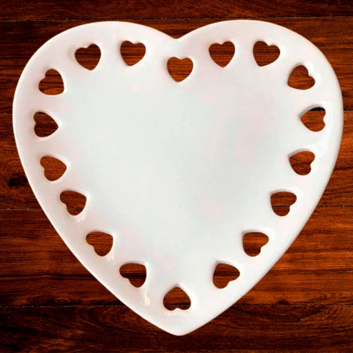 Pode ser usado como centro de mesa portando objetos, ou, porta anéis. O produto é produzido em cerâmica branca com alto brilho e excelente acabamento. Possui design no formato e detalhes vazados de coração. Lindo para uma decoração fina, romântica e moderna.