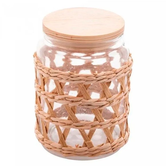 POTE DE VIDRO C/TAMPA DE MADEIRA SISAL 750ML - REF.29123