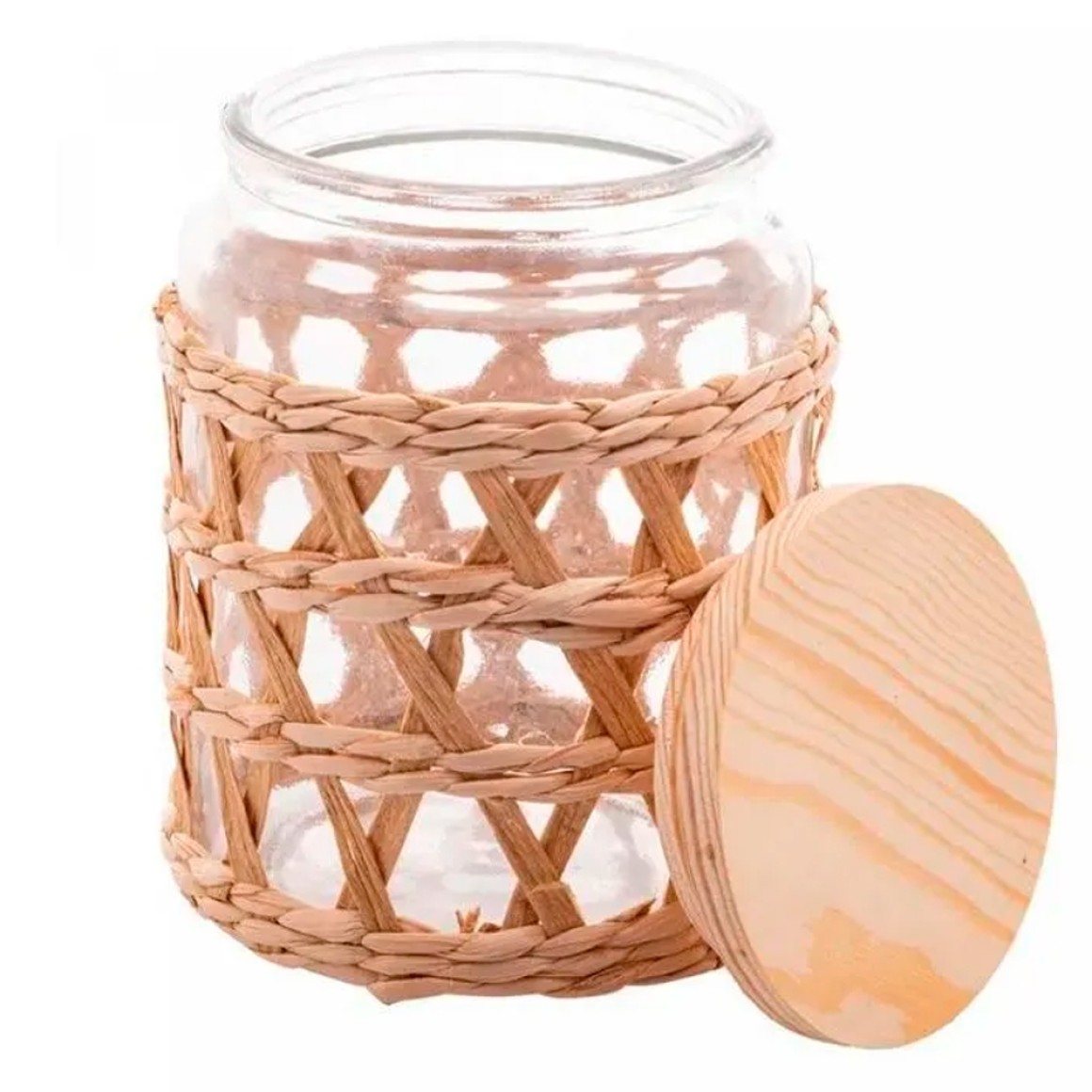Pote de Vidro C/ Tampa de Madeira Sisal 750ml - Ref.29123