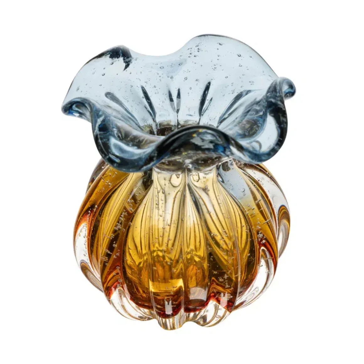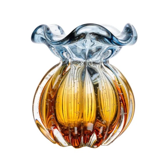 VASO DE VIDRO MURANO ITALY AZUL E AMBAR 11CMX13CM